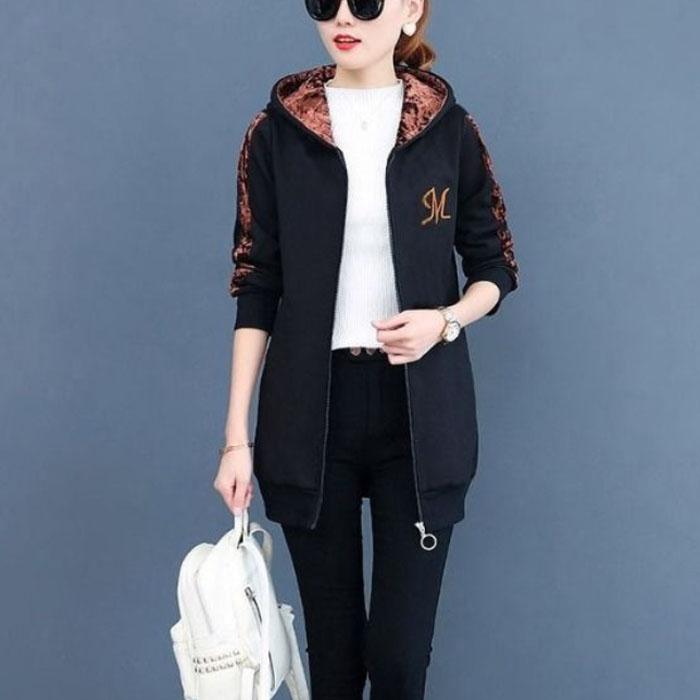 Women Casual Jacket Spring Thin Fleece Hooded Coat Boutique Slim Top Trendy Comfortable Windbreaker Long