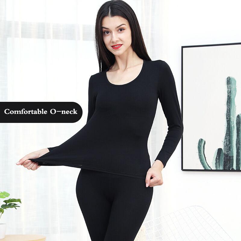 Women Winter Autumn Thermal Underwear Plus Velvet O-neck Female Tight Suit Thicken Windproof Comfortable Soft Lining Long Sleeve High Elasticity Slim