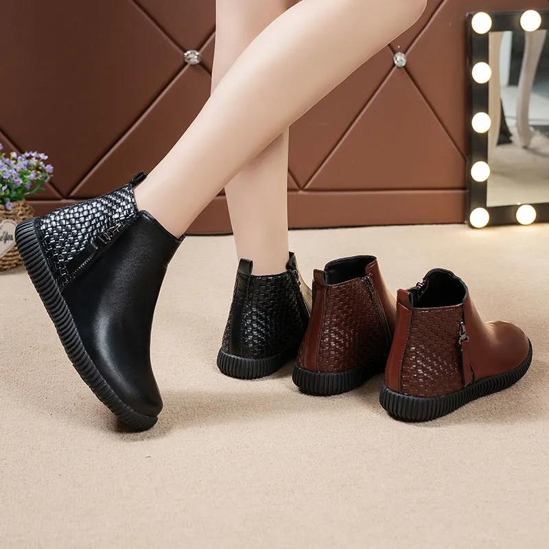 Women's Boots Soft-soled Autumn Winter Boots Warm and Velvet Non-slip Soft-soled Cotton Shoes Flat Shoes