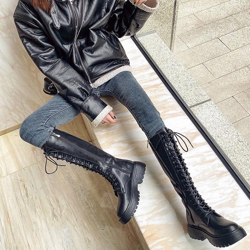 Women's British Style Lace-up Thick-soled Boots Women's Thick-heeled Martin Boots No More Than Knee-length