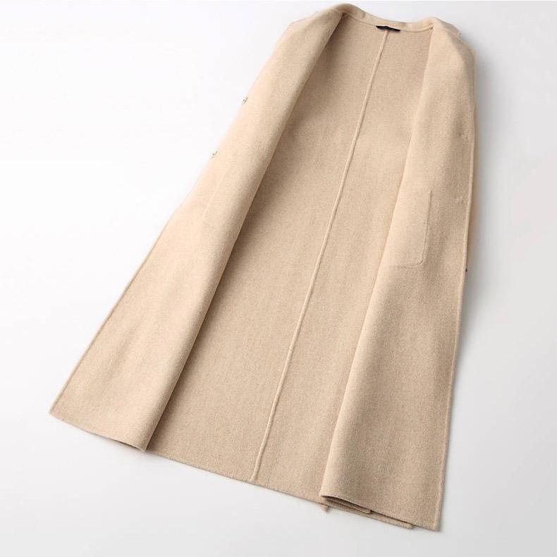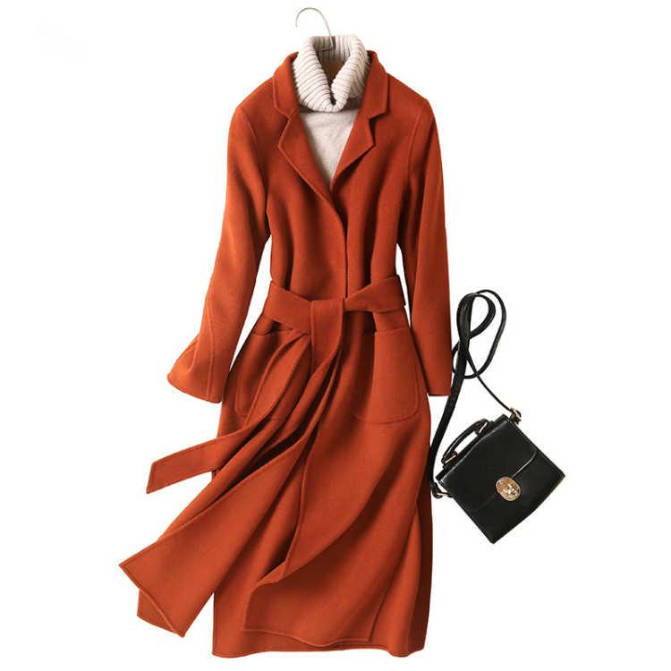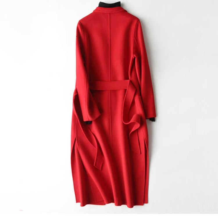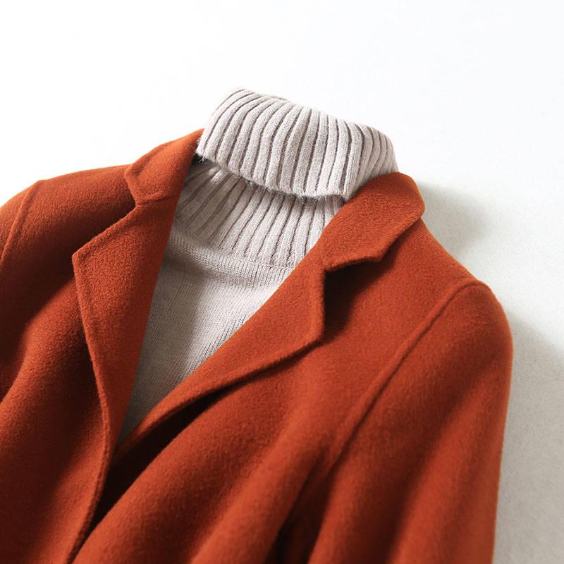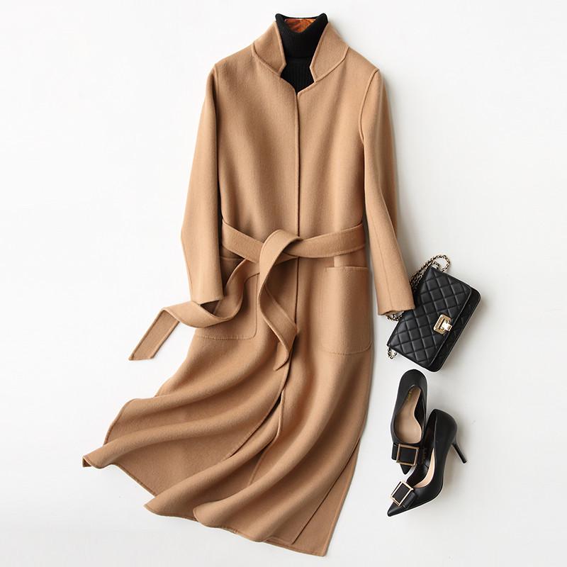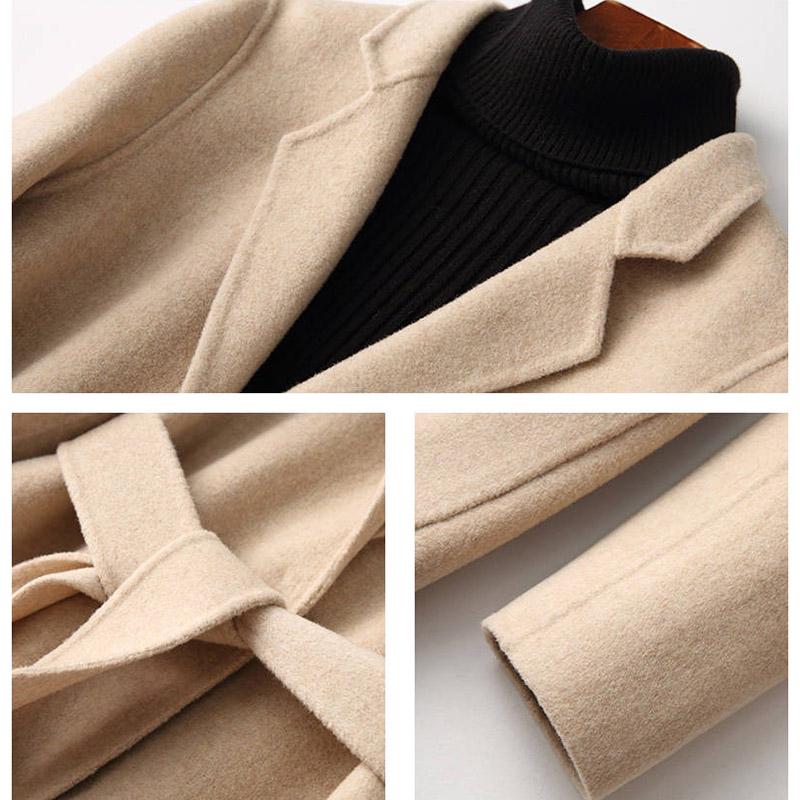 Women's Coat Fashion Wool Double-sided Cashmere Coat Woolen Overcoat Elegant Women Jacket with Belt