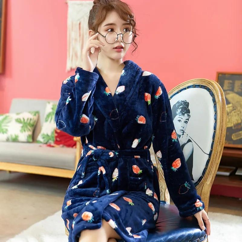 Women's Coral Fleece Long Nightgown Robe Autumn Winter Thickened Flannel Bathrobe Sexy Pajama Dress Bandage Loose Home Wear
