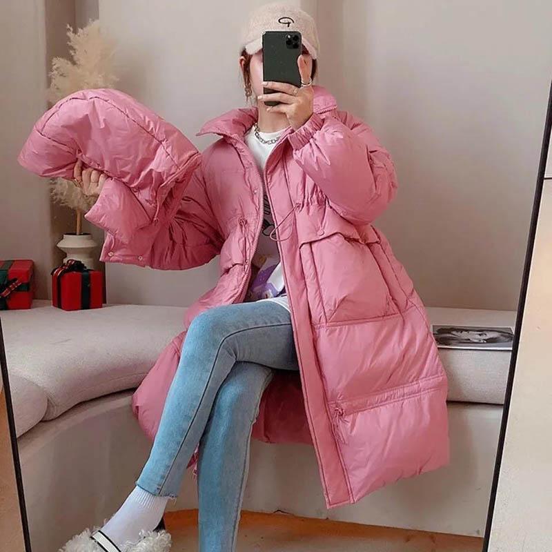 Women's Down Jacket Over-the-knee White Duck Down Mid-length Padded Waist Hooded Jacket