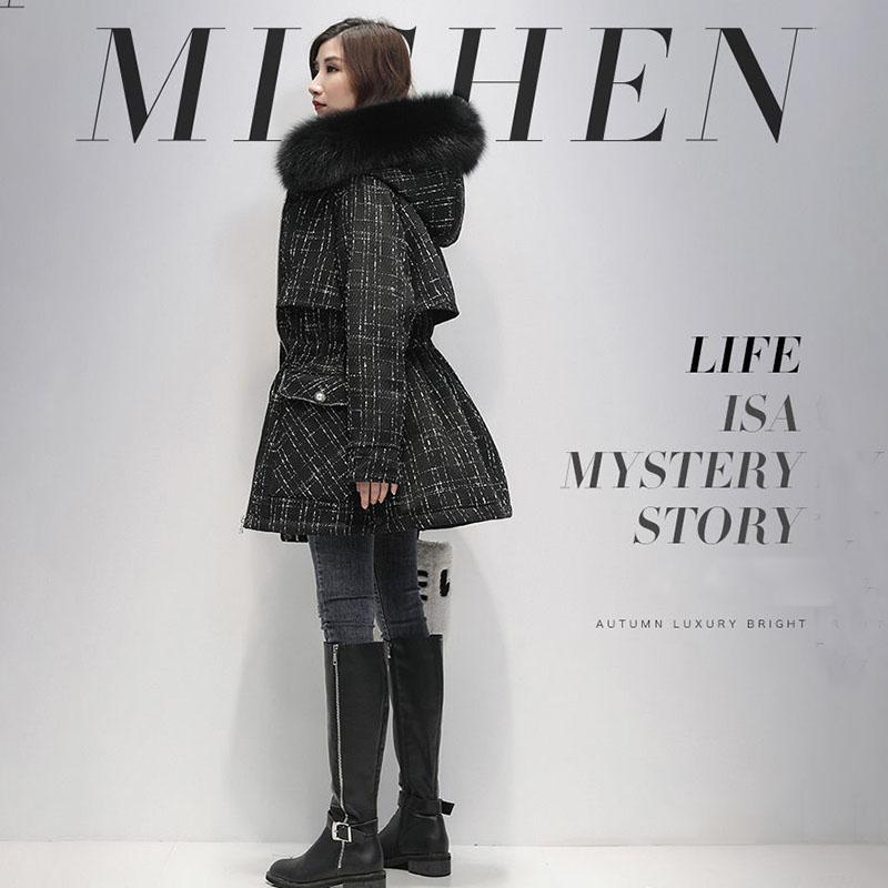 Women's Down Jacket Winter Long Slim Thick Parka Coat Ladies Drawstring Hooded Down Coat with Removable Real Fox Fur Collar Plus Size S-2XL