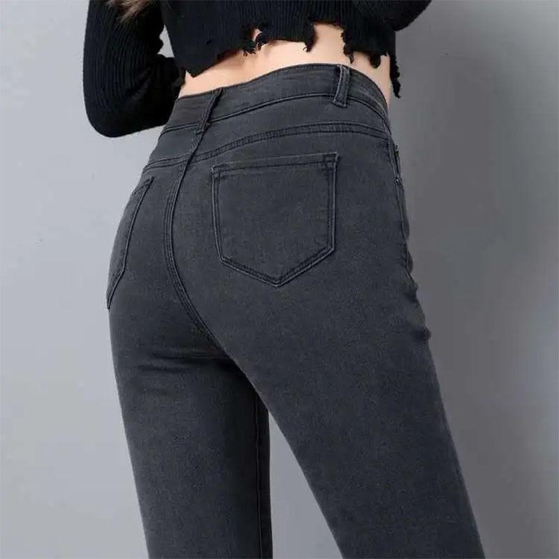 Women's High Waist Jeans Korean Style Black Pencil Pants Tight Elastic Smoke Gray Student Slim Magic Pants Long Pants