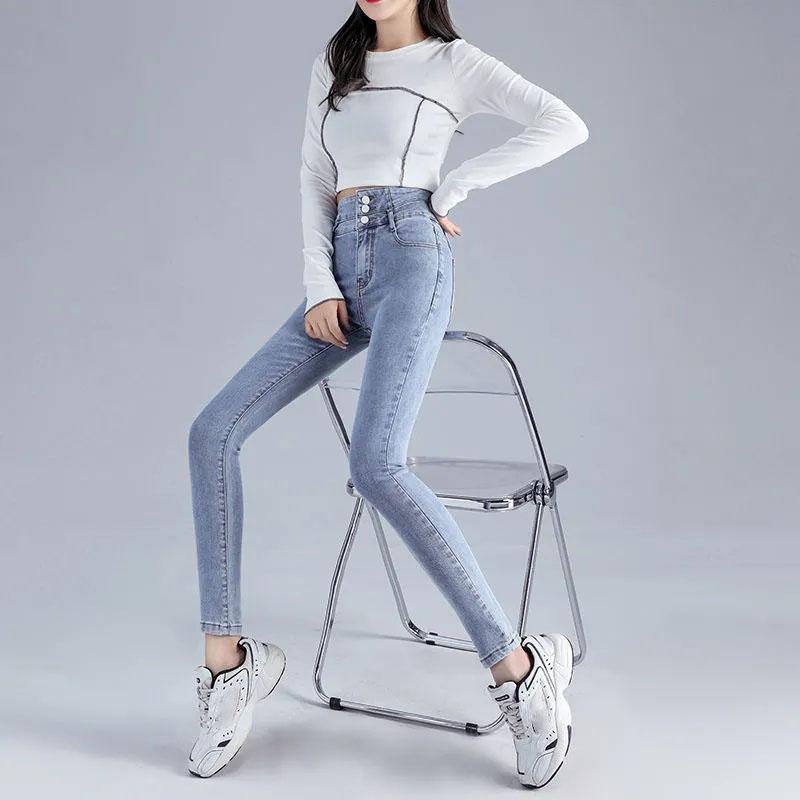 Women's High-waisted Skinny Jeans Spring and Autumn Elastic Tight-fitting Show Tall and Thin Outer Wear Pencil Pants Causal Nine-point Pants