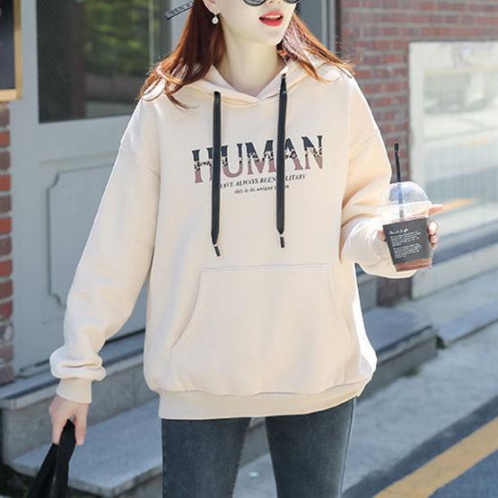 Women's Hooded Plush Tops Autumn and Winter Versatile Coat Solid Color Casual Loose Letter Printed Hoodies