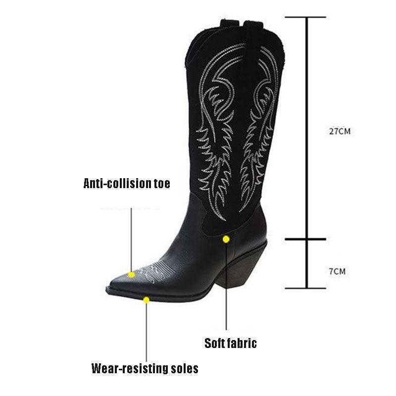 Women's Knee-high Leather Boots Autumn Winter High Boots Thick Heel Martin Boots Western Cowboy Boots