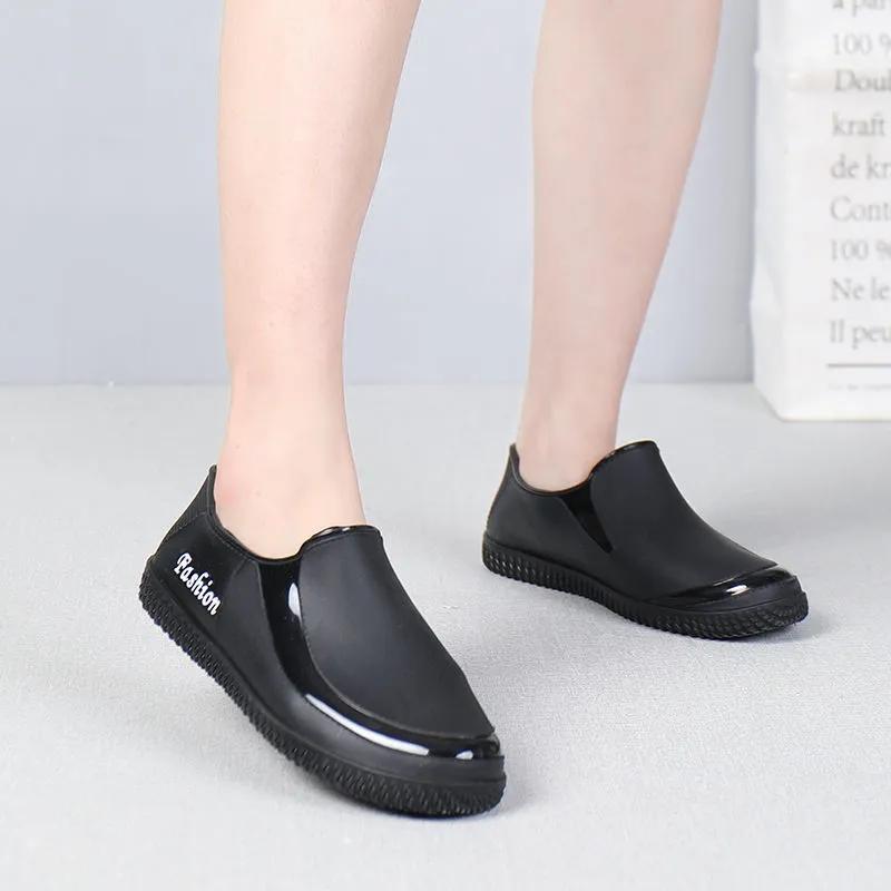 Women's Low-Top Rain Boots Adult Casual Waterproof Shoes Short Tube Kitchen Anti-Slip Ladies Summer Car Wash Work Water Shoes Soft Mother Shoes