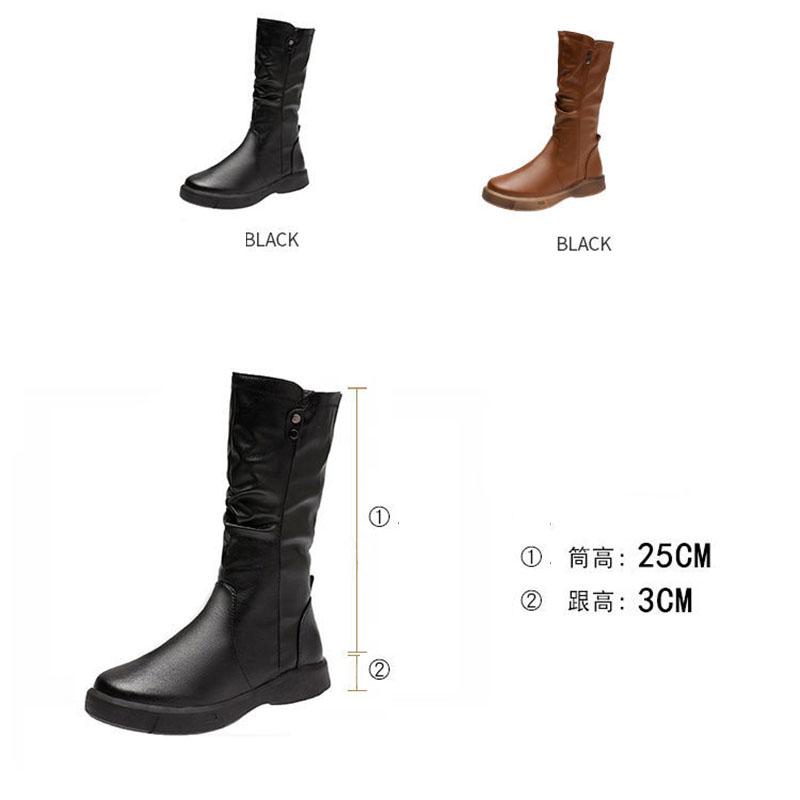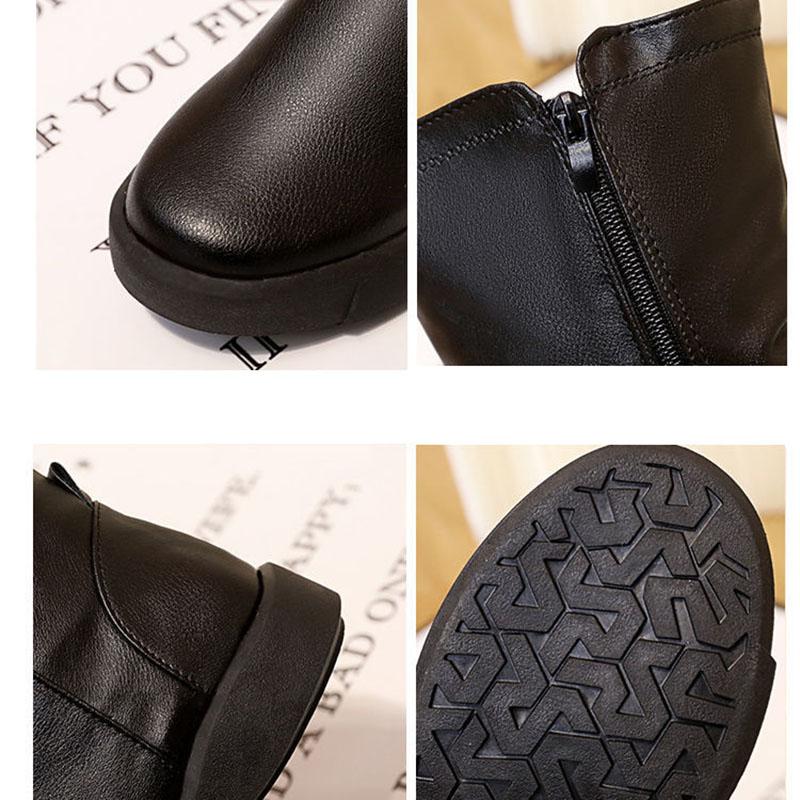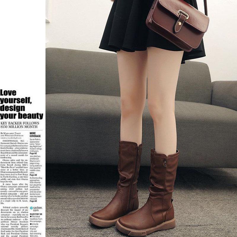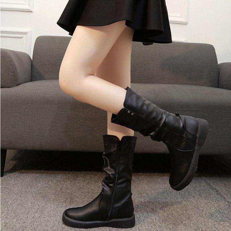 Women's PU Martin Boots Autumn Winter Flat Boots Plus Velvet Knight's Style Boots Zipper Leather Shoes
