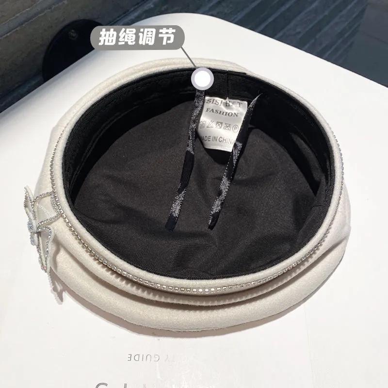 Women's Rhinestone Butterfly Wool Blend Beret Hat Spring Autumn All-match Elegant Retro Painter Hat Solid Color Baker Hat
