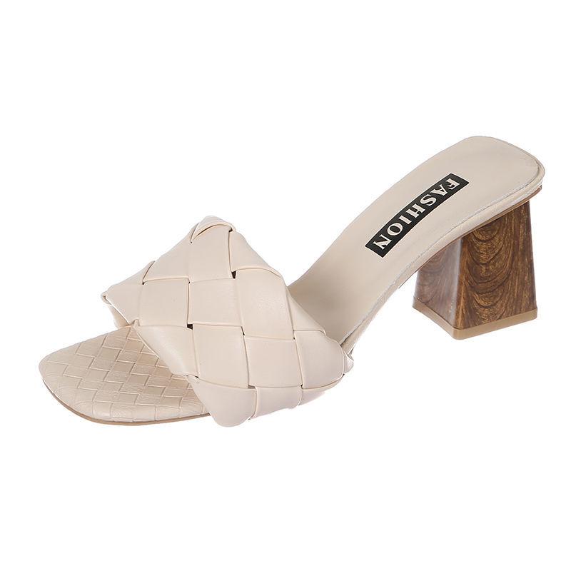 Women's Shoes Summer Slippers Open-toe Women's Outer Wear Thick-heeled High-heeled Square-toed Sandals Slippers