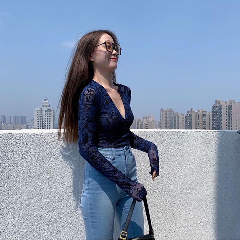 Women's Spring and Autumn Long-sleeved Shirt V-neck Slim Bottoming Top