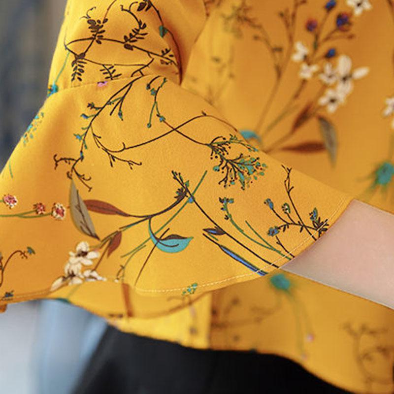 Women's Summer Chiffon Lace Shirt Short Sleeve Round Neck Loose Print Bell Sleeve Top