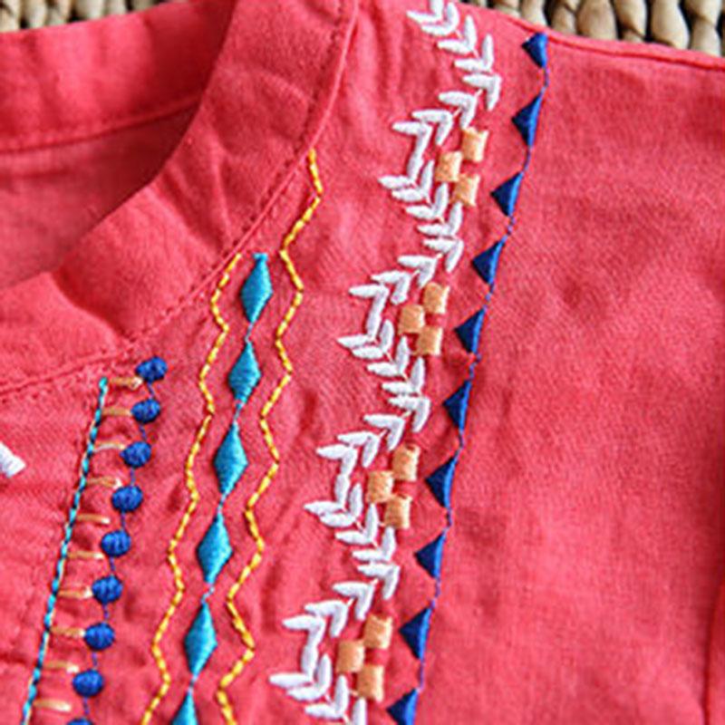 Women's Summer Short-sleeved T-shirt Embroidered Round Neck Large Size Loose Top All Match
