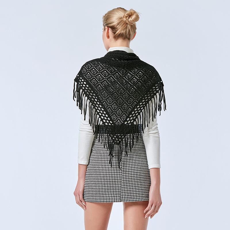 Women's Winter Korean Style Tassel Knitted Wool Triangle Scarf Solid Color All Match Shawl Scarf Triangle Scarf Bib Shawl Dual-purpose Knitting Scarf