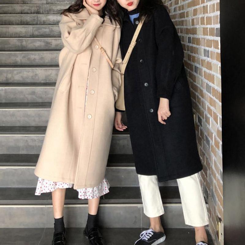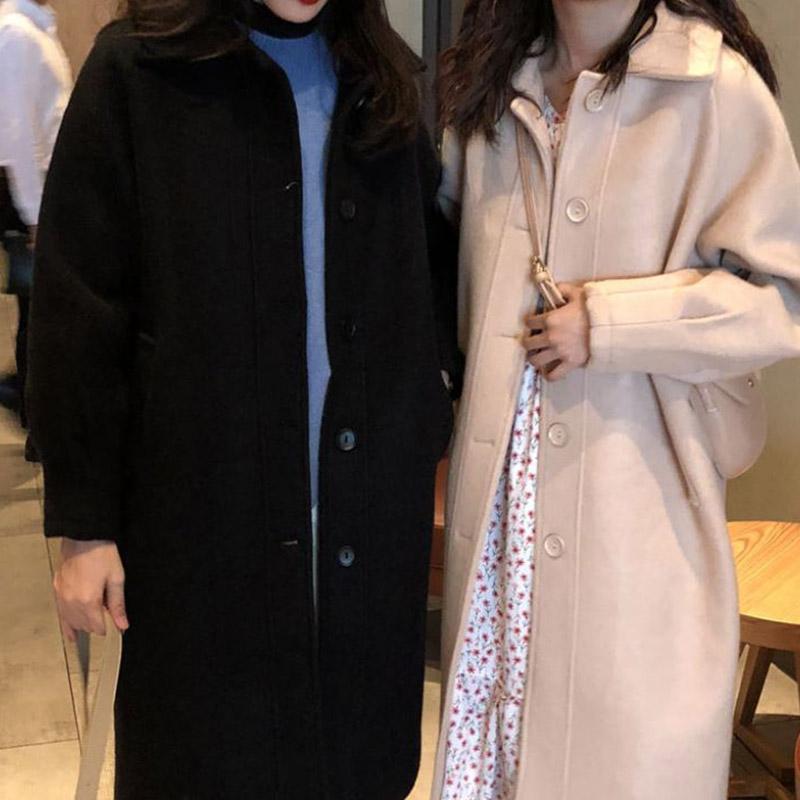 Women's Woolen Coat Korean Retro Padded Over-the-knee Coat Autumn and Winter Mid-length Woolen Coat