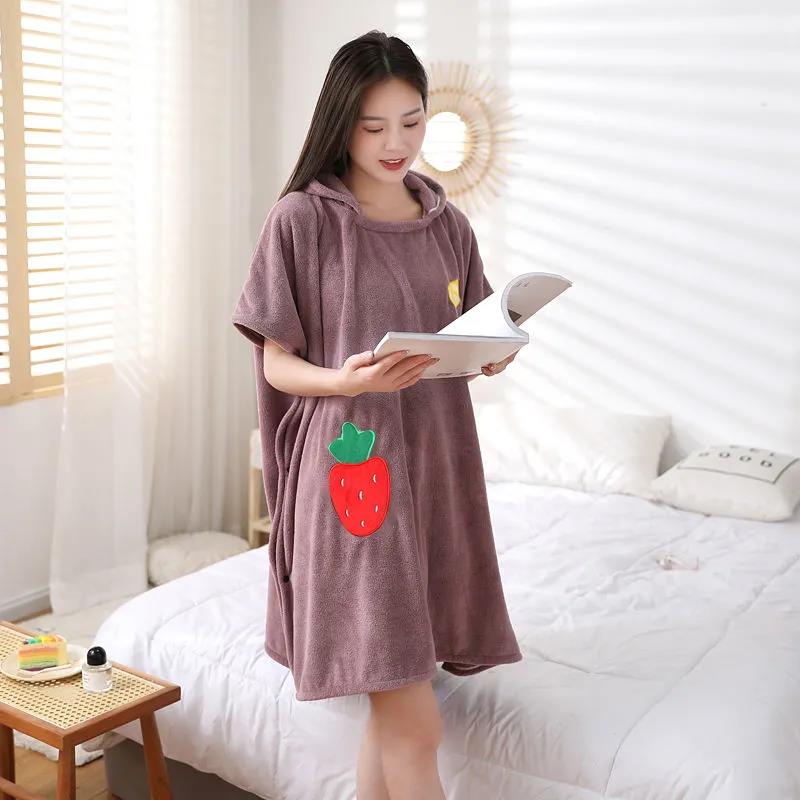 WTEMP Bath Towel Female Wearable Adult Bathrobe with Hood Cape Coral Fleece Bath Skirt Super Absorbent Home Night Gown