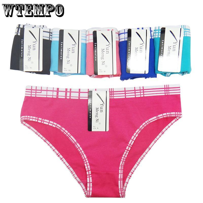 WTEMPO 6 Pcs/Lot Brand Cotton Solid Color Soft Panties For Women Briefs Underwear Lingerie Intimates