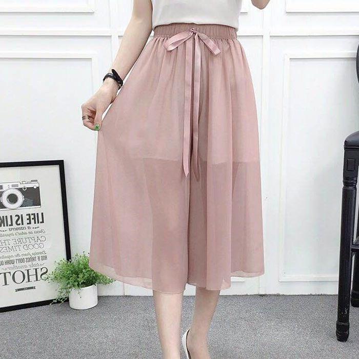 WTEMPO Chiffon Cropped Trousers Cool Summer Thin Women Loose High Waist Wide Leg Straight Pants Casual Comfortable Office Home Beach Sunscreen