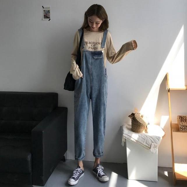 WTEMPO Loose Retro Denim Overalls Women's Slimming High-rise Straight-leg Cropped Pants High-rise Jeans
