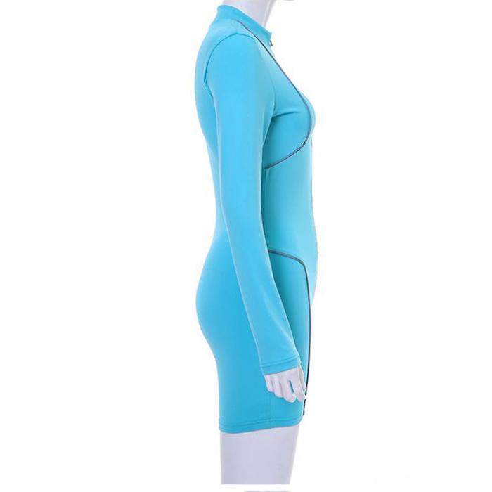 WTEMPO Rompers Luminous Stitching Long-sleeved Tight-fitting Zipper Casual Suit Women Sporty Jogging Jumpsuits
